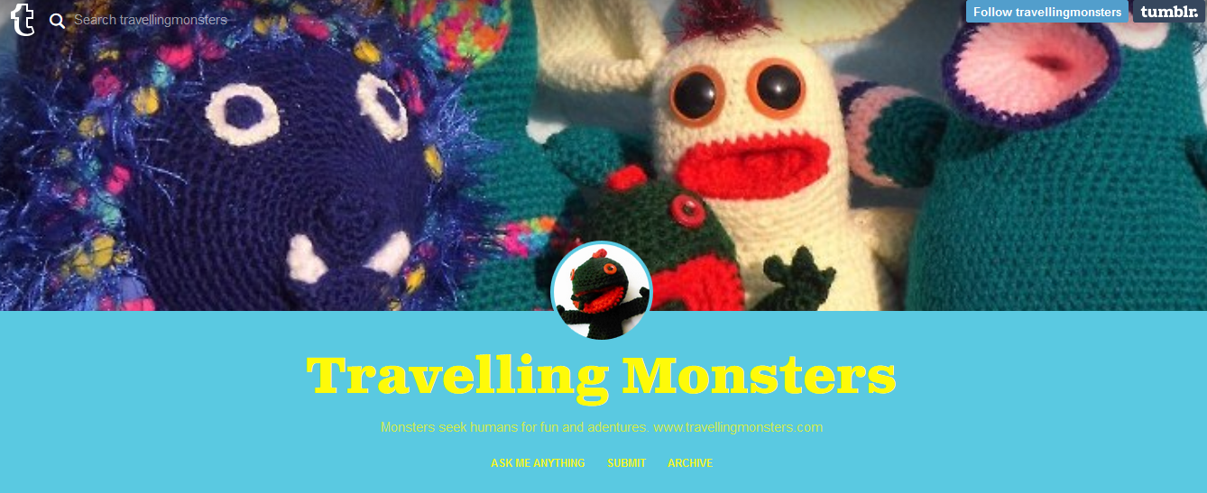 December 10, 2015December 10, 2015zola We’re On tumblr! The travelling monsters now have a tumblr too. Currently, submissions are switched on, so you can send in photos, videos and stories via the tumblr blog, and you don’t need to be logged in to tumblr to do it. We can haz MOAR social meeja! Share this: Click to share on X (Opens in new window) X Click to share on Facebook (Opens in new window) Facebook Click to share on Tumblr (Opens in new window) Tumblr Like Loading... Related