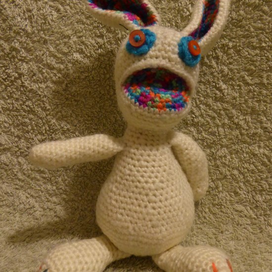 Watership Bunny is back on his feet, after a couple of washes and some replacement eye surgery. This rabbit has seen things. Things no rabbit is meant to see. Which explains his slightly intense stare. While Watership hasn’t been left entirely unmarked by his encounter with the Hellbeast, he is ready for adventure. He’d just prefer one without dogs.