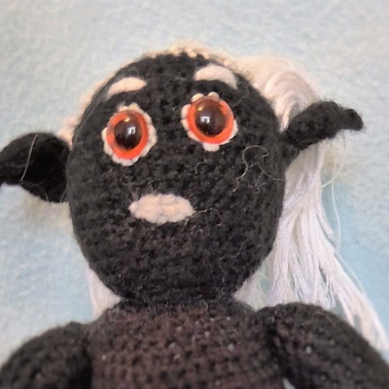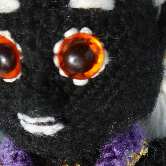 **The white fluff you can see in close up comes from some feather yarn he was in my project bag with.