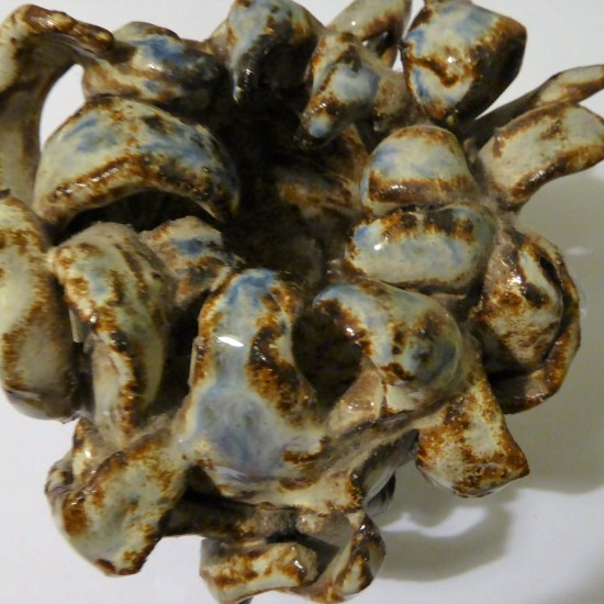Way back when I was dabbling in pottery, I made a small sculpture, just a bit more complicated than a thumb pot, that I was wild about the idea of. But when it came back from the first firing I remember the gut punch of disappointment. The made thing was nothing like the idea in my head. I was going to throw it away, but the lab tech told me, “Glaze it anyway. Finish it.” She was right. The glaze brought it to life. I’m not claiming it’s great art, but I like the result.