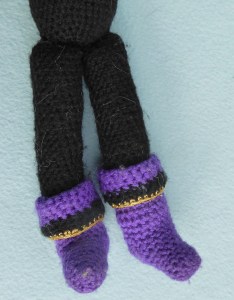 March 2, 2016March 4, 2016zola Drow Legs Don’t like his blobby feet, and his legs were too short. Added boots to make legs in proportion. Crocheted them onto the bottom of his feet and kept going to make turnover tops.