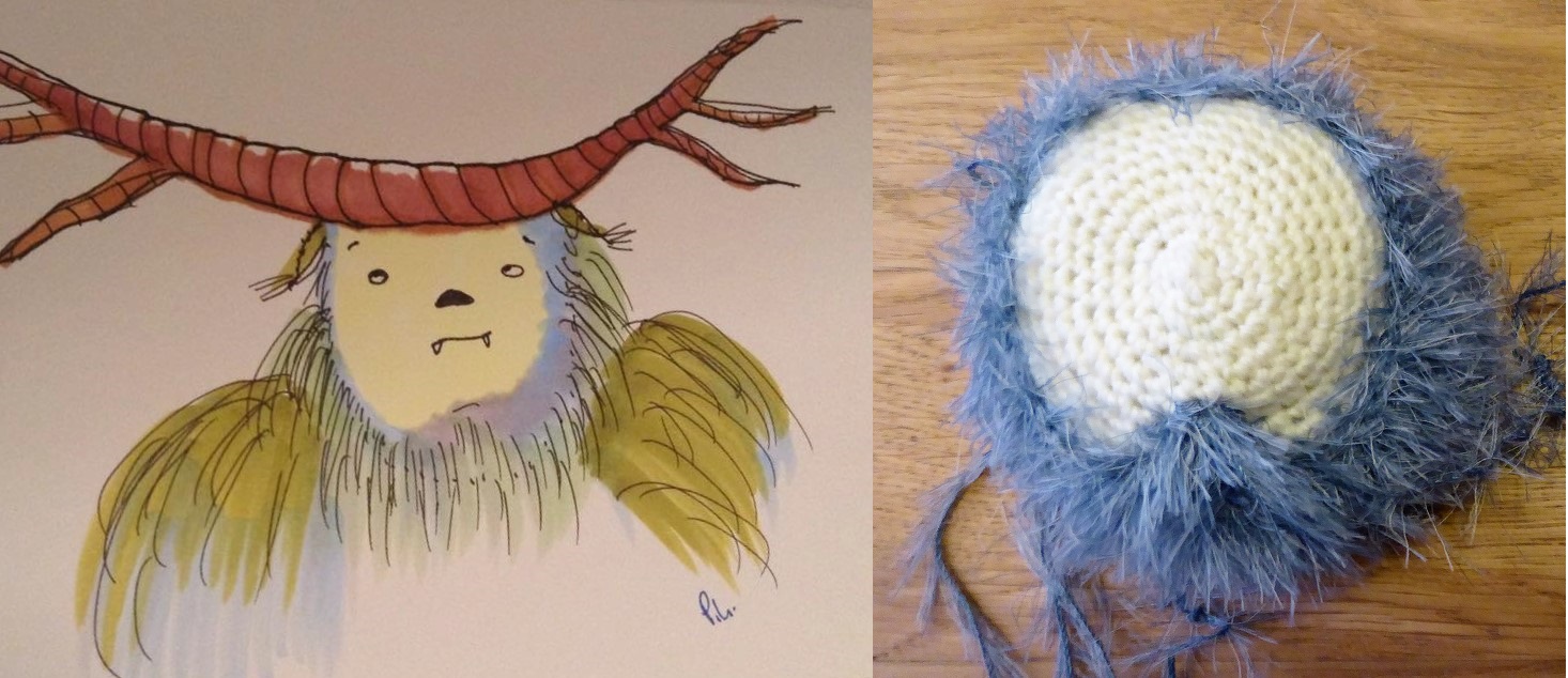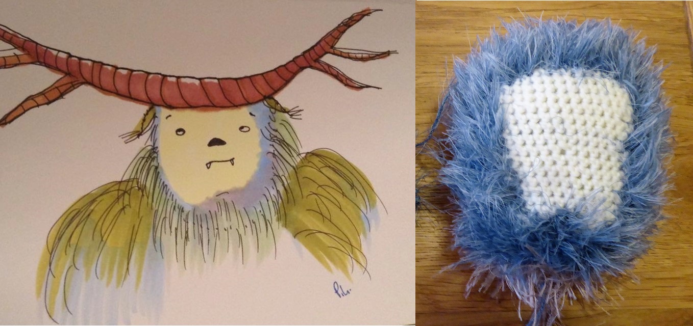 Been working on Nimakim.  Here’s my first attempt at his head. As I was crocheting in a spiral, I just swapped yarns as I got to his face. But I wasn’t entirely happy with it.