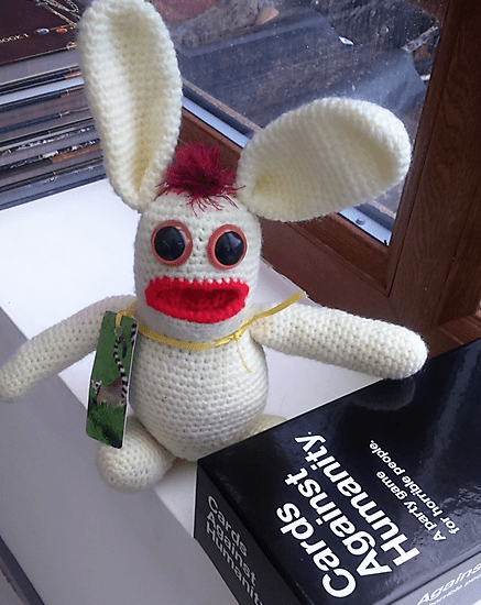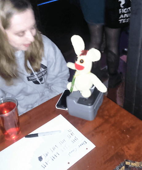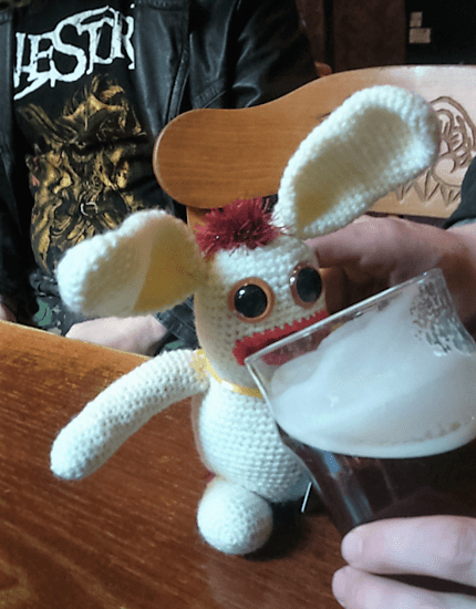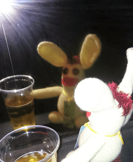 Bananas Bunny started off his evening by picking a beer from his new friend Zelda’s impressive collection.