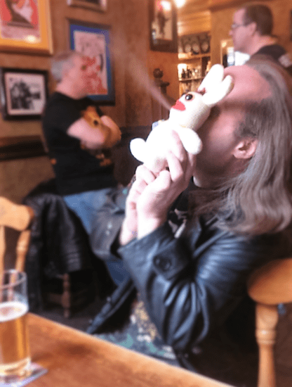 As soon as Bananas Bunny arrived in Manchester, he took control of the juke box and subjected everybody to a loud heavy metal assault.