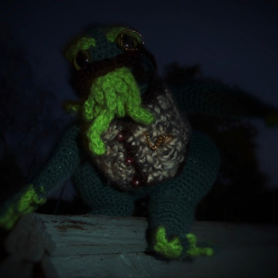 This monster just needs his label stitched on, and he’s all ready to go. Sadly, he has lost his pipe but maybe his new hosts can find or make one for him. Ph’nglui mglw’nafh Cthulhu R’lyeh wgah’nagl fhtagn.