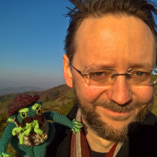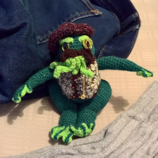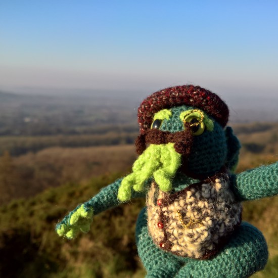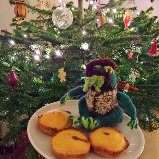 Although Gentleman Cthulhu arrived at our home back in early November, he’s done absolutely nothing since then because he’s been asleep. No amount of singing, dancing or ritual chanting would wake the blighter. However, he seems to have finally been roused by the smell of Duncan’s home made mince pies, whereupon he announced to us that his correct title is Viscount Cthulhu. Of course he’s a Viscount; look at that green!