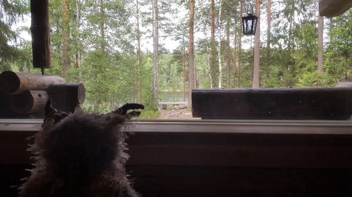 Gazing out of the cottage at Hawkhill Nature, Espoo.
