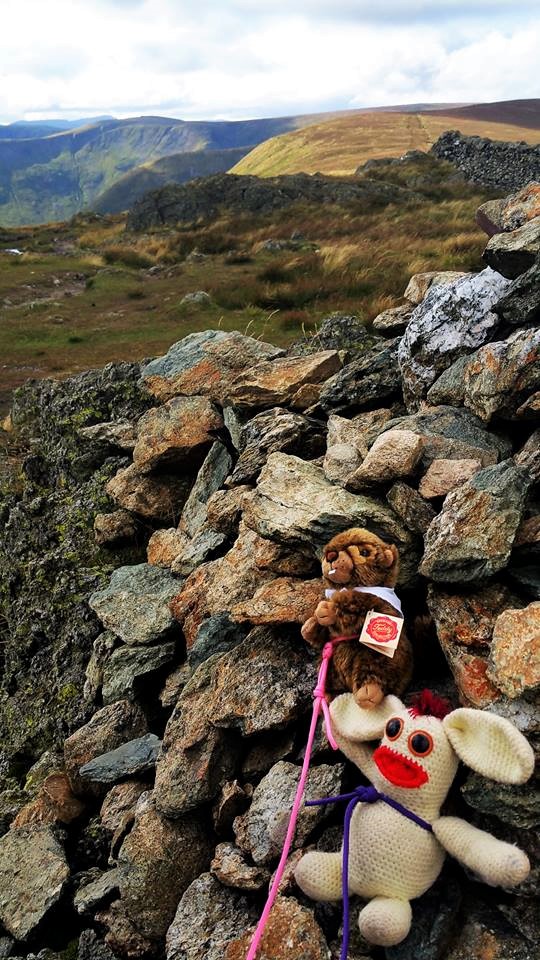 November 6, 2017November 6, 2017zola On Top Meeko Marmot got the upper hand on the summit cairn of Kentmere Pike and Bananas Bunny swore revenge!